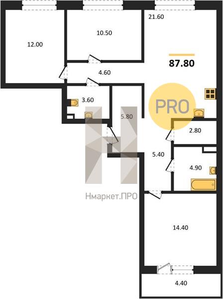 | Общая площадь: | 87.80 м2 |