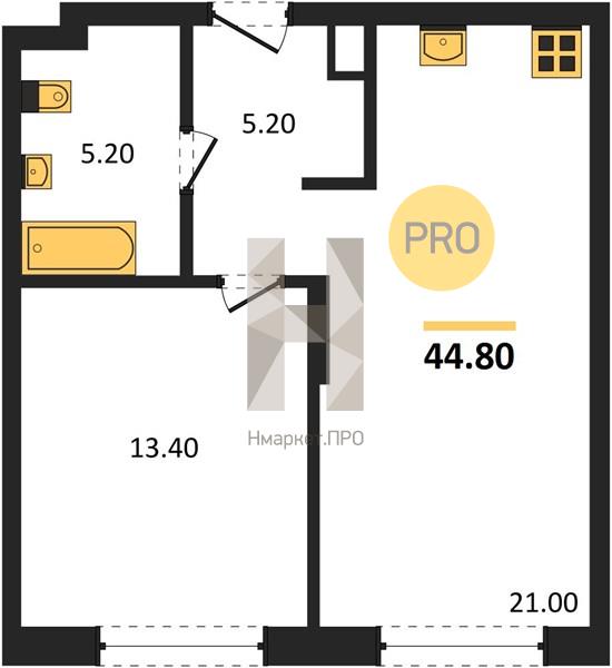 | Общая площадь: | 44.80 м2 |