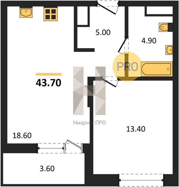 Квартира: 1 к 43,70 кв.м., 4 этаж в комплексе Курчатов, 1 очередь, корп.1, сдача: 4кв. , этажей: 17, адрес Екатеринбург г., Академика Красовского ул., , Застройщик: Талан.