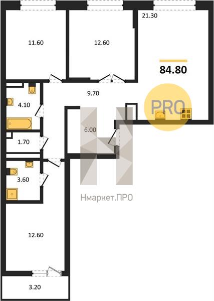 | Общая площадь: | 84.80 м2 |