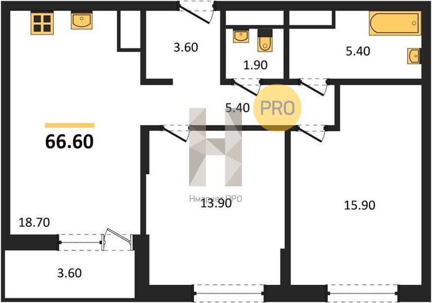 | Общая площадь: | 66.60 м2 |