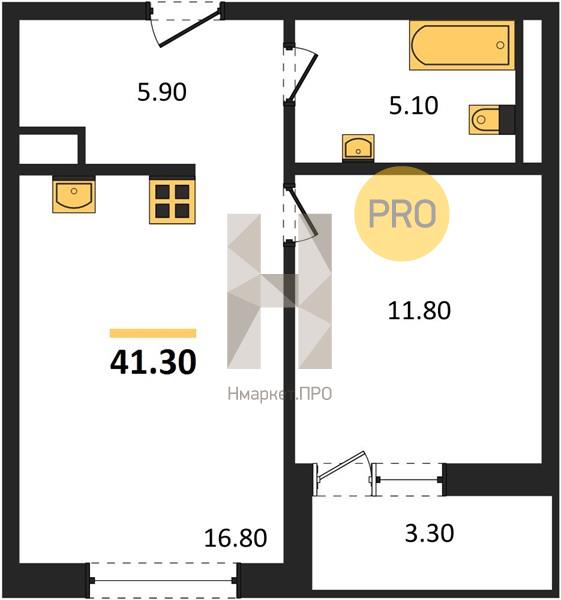 Квартира: 1 к 41,30 кв.м., 3 этаж в комплексе Курчатов, 1 очередь, корп.1, сдача: 4кв. , этажей: 17, адрес Екатеринбург г., Академика Красовского ул., , Застройщик: Талан.