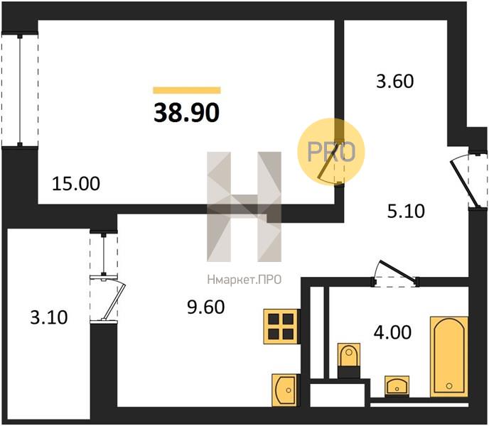 Квартира: 1 к 38,90 кв.м., 4 этаж в комплексе Курчатов, 1 очередь, корп.1, сдача: 4кв. , этажей: 17, адрес Екатеринбург г., Академика Красовского ул., , Застройщик: Талан.