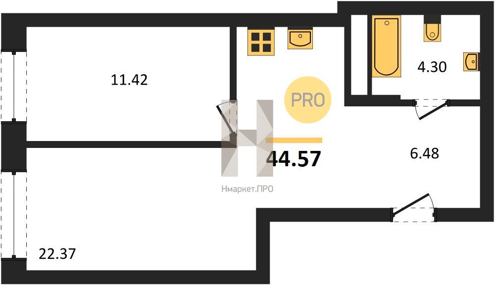 | Общая площадь: | 44.57 м2 |