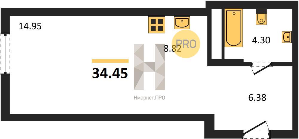 Студия: 34,45 кв.м., 1 этаж в комплексе RAZUM в Академическом, 1 очередь, корп.2, сдача: 1кв. , этажей: 12, адрес Екатеринбург г., Академика Курчатова ул., д. 2, Застройщик: РАЗУМ.