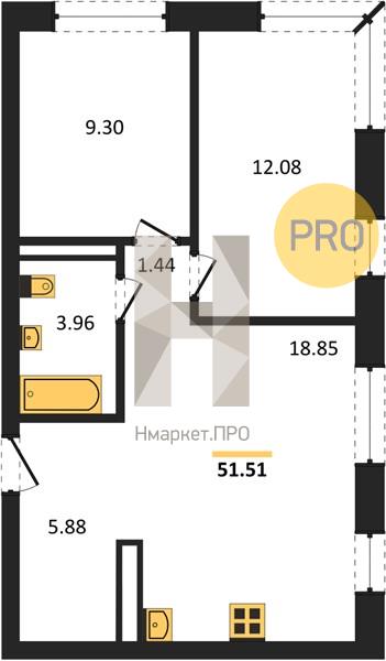 Квартира: 2 к 51,51 кв.м., 3 этаж в комплексе RAZUM в Академическом, 1 очередь, корп.2, сдача: 1кв. , этажей: 12, адрес Екатеринбург г., Академика Курчатова ул., д. 2, Застройщик: РАЗУМ.