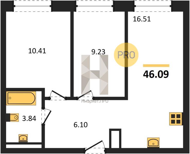 Квартира: 2 к 46,09 кв.м., 5 этаж в комплексе RAZUM в Академическом, 1 очередь, корп.2, сдача: 1кв. , этажей: 12, адрес Екатеринбург г., Академика Курчатова ул., д. 2, Застройщик: РАЗУМ.