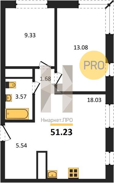 Квартира: 2 к 51,23 кв.м., 7 этаж в комплексе RAZUM в Академическом, 1 очередь, корп.1, сдача: 1кв. , этажей: 24, адрес Екатеринбург г., Академика Курчатова ул., д. 2, Застройщик: РАЗУМ.