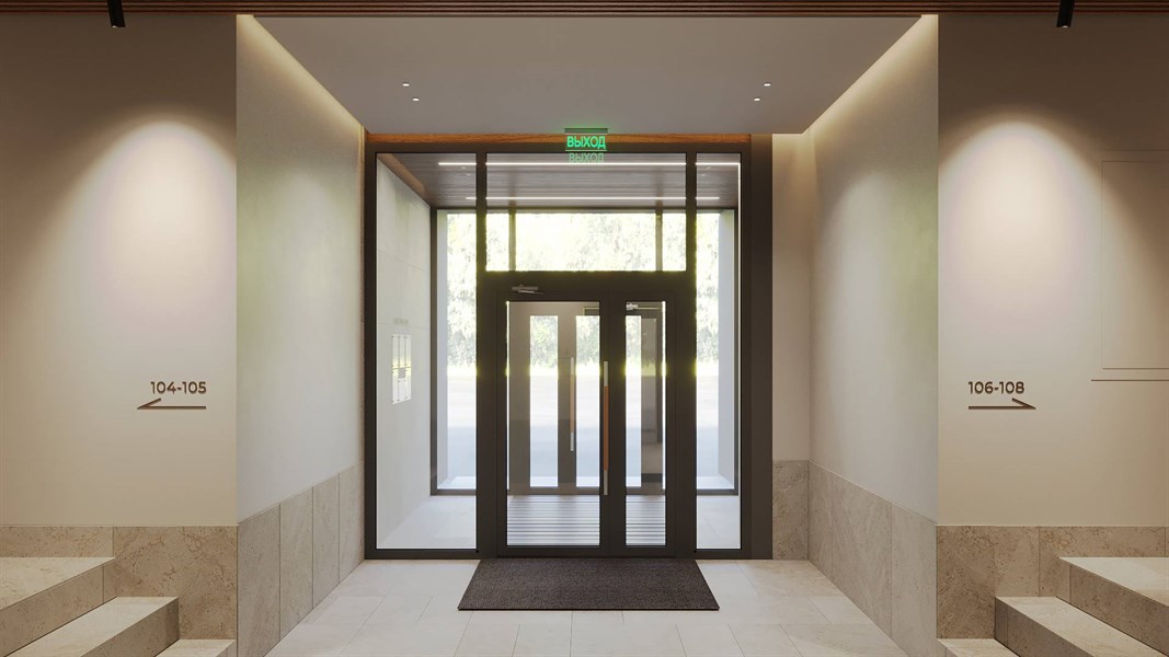 Подъездные холлы встречают прозрачным остеклением входной зоны. В стильной зоне ожидания можно комфортно провести время, ожидая такси или курьера. Разъемы для розеток и бесплатный wi-fi сделают пребывание еще более комфортным. В холлах: