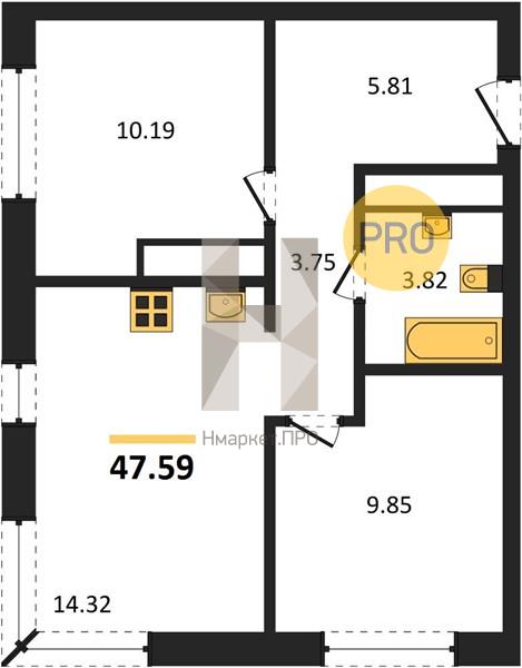Квартира: 2 к 47,59 кв.м., 11 этаж в комплексе RAZUM в Академическом, 3 очередь, корп.4, сдача: 3кв. , этажей: 24, адрес Екатеринбург г., Академика Курчатова ул., д. 4, Застройщик: РАЗУМ.