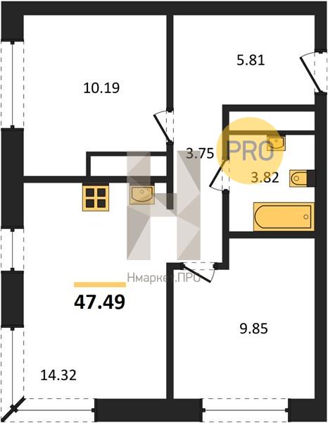 Квартира: 2 к 47,49 кв.м., 19 этаж в комплексе RAZUM в Академическом, 3 очередь, корп.4, сдача: 3кв. , этажей: 24, адрес Екатеринбург г., Академика Курчатова ул., д. 4, Застройщик: РАЗУМ.