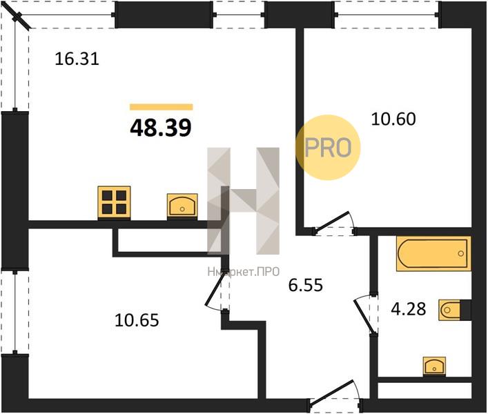 Квартира: 2 к 48,39 кв.м., 5 этаж в комплексе RAZUM в Академическом, 3 очередь, корп.4, сдача: 3кв. , этажей: 24, адрес Екатеринбург г., Академика Курчатова ул., д. 4, Застройщик: РАЗУМ.