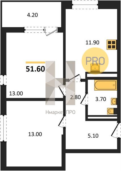 | Общая площадь: | 51.60 м2 |