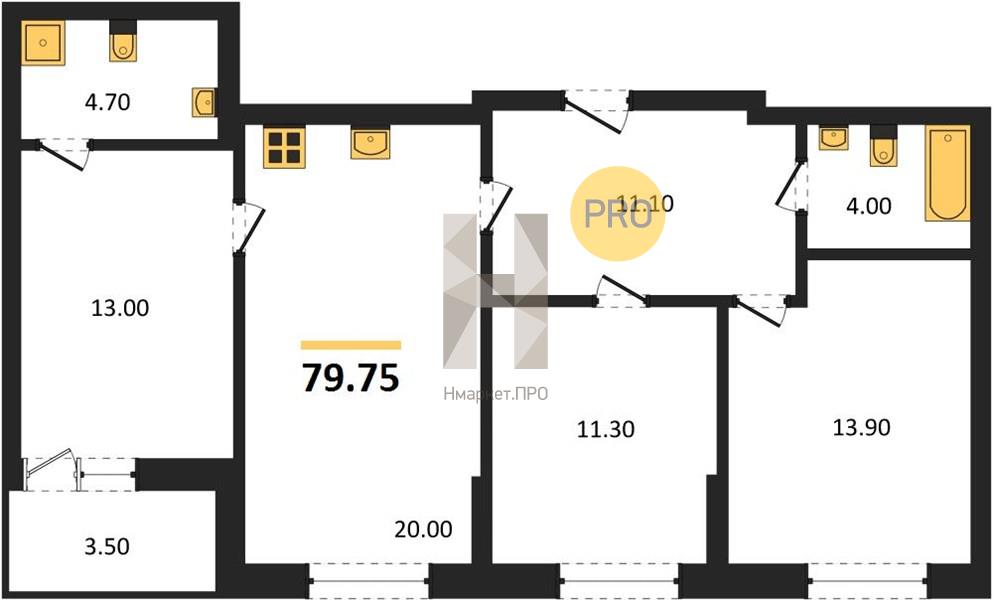 | Общая площадь: | 79.75 м2 |