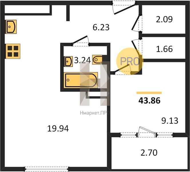 Квартира: 1 к 43,58 кв.м., 11 этаж в комплексе Amundsen, 1 очередь, корп.1, сдача: 1кв. , этажей: 24, адрес Екатеринбург г., Академика Ландау ул., , Застройщик: Прогресс.