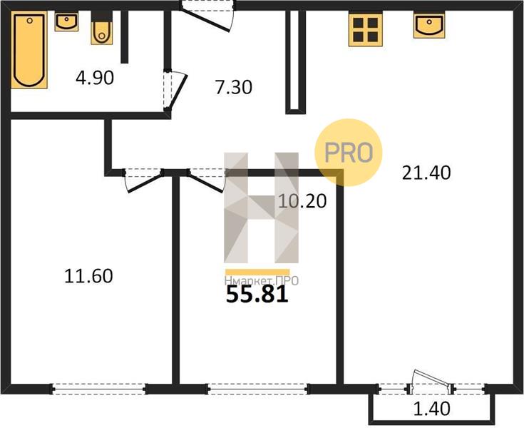 Квартира: 2 к 55,81 кв.м., 4 этаж в комплексе Amundsen, 1 очередь, корп.1, сдача: 1кв. , этажей: 24, адрес Екатеринбург г., Академика Ландау ул., , Застройщик: Прогресс.