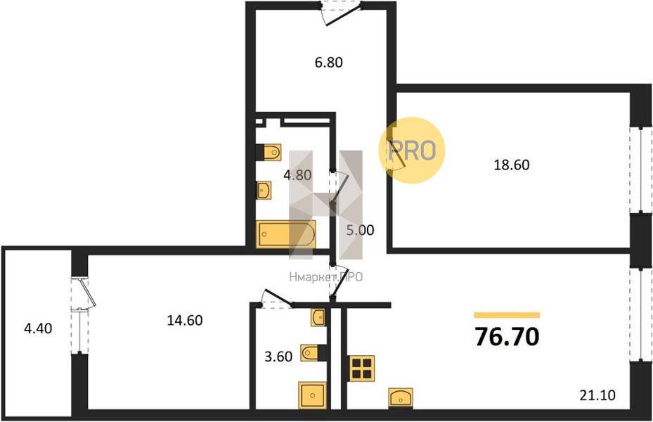 | Общая площадь: | 76.70 м2 |