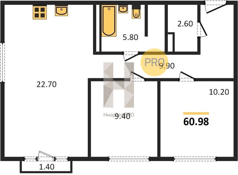 Квартира: 2 к 60,98 кв.м., 5 этаж в комплексе Amundsen, 1 очередь, корп.1, сдача: 1кв. , этажей: 24, адрес Екатеринбург г., Академика Ландау ул., , Застройщик: Прогресс.