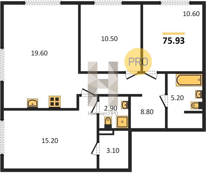| Общая площадь: | 75.93 м2 |