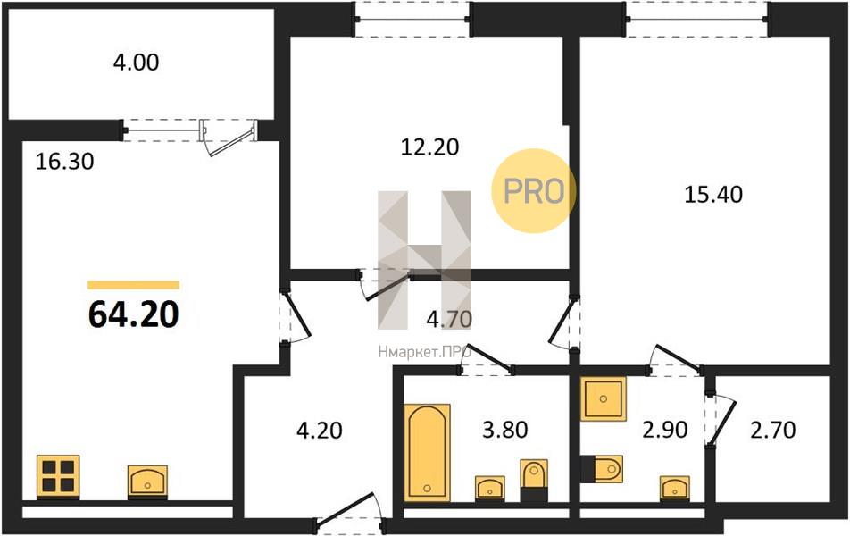 | Общая площадь: | 64.20 м2 |