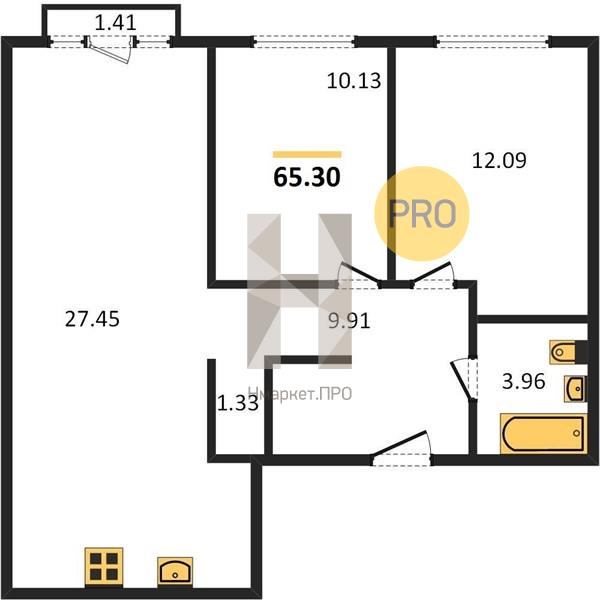 | Общая площадь: | 65.29 м2 |