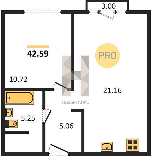 | Общая площадь: | 42.59 м2 |
