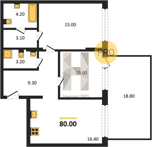 | Общая площадь: | 80.00 м2 |