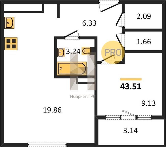 Квартира: 1 к 43,51 кв.м., 12 этаж в комплексе Amundsen, 1 очередь, корп.1, сдача: 1кв. , этажей: 24, адрес Екатеринбург г., Академика Ландау ул., , Застройщик: Прогресс.