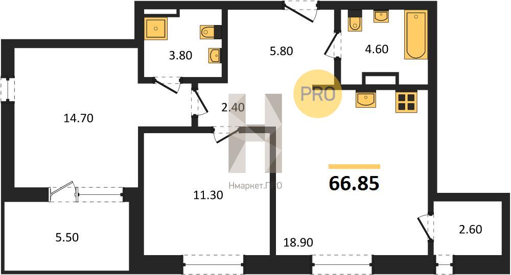 Квартира: 2 к 66,85 кв.м., 9 этаж в комплексе А+, 2 очередь, корп.2.2, сдача: 2кв. , этажей: 25, адрес Екатеринбург г., Академика Ландау ул., , Застройщик: Девелопмент-Юг.