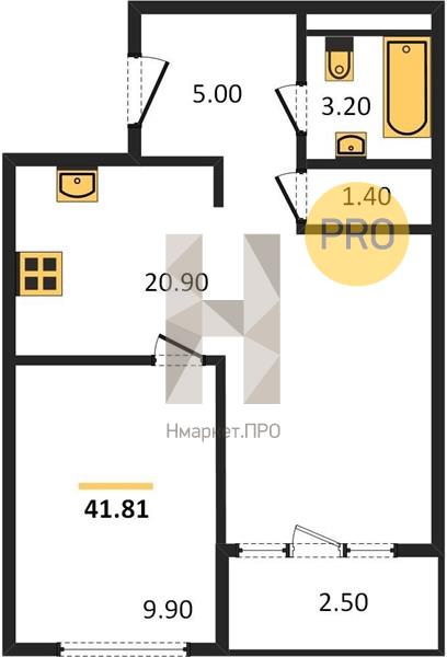Квартира: 1 к 41,40 кв.м., 16 этаж в комплексе Amundsen, 1 очередь, корп.1, сдача: 1кв. , этажей: 24, адрес Екатеринбург г., Академика Ландау ул., , Застройщик: Прогресс.