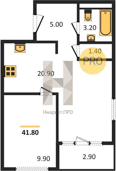 Квартира: 1 к 41,40 кв.м., 24 этаж в комплексе Amundsen, 1 очередь, корп.1, сдача: 1кв. , этажей: 24, адрес Екатеринбург г., Академика Ландау ул., , Застройщик: Прогресс.