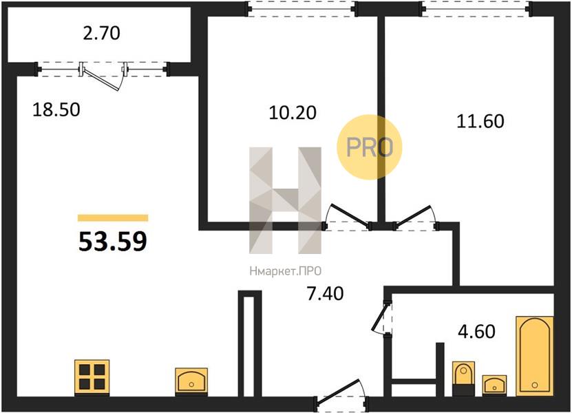 | Общая площадь: | 53.59 м2 |