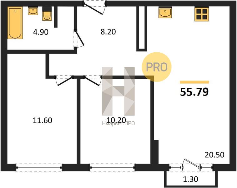 Квартира: 2 к 55,79 кв.м., 7 этаж в комплексе Amundsen, 1 очередь, корп.1, сдача: 1кв. , этажей: 24, адрес Екатеринбург г., Академика Ландау ул., , Застройщик: Прогресс.