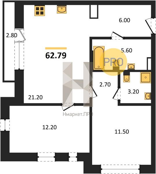 | Общая площадь: | 62.79 м2 |