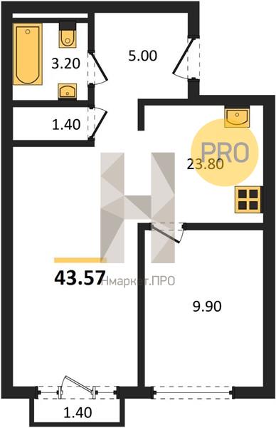 Квартира: 1 к 43,57 кв.м., 8 этаж в комплексе Amundsen, 1 очередь, корп.1, сдача: 1кв. , этажей: 24, адрес Екатеринбург г., Академика Ландау ул., , Застройщик: Прогресс.