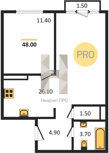 Квартира: 1 к 48,04 кв.м., 11 этаж в комплексе Amundsen, 1 очередь, корп.1, сдача: 1кв. , этажей: 24, адрес Екатеринбург г., Академика Ландау ул., , Застройщик: Прогресс.