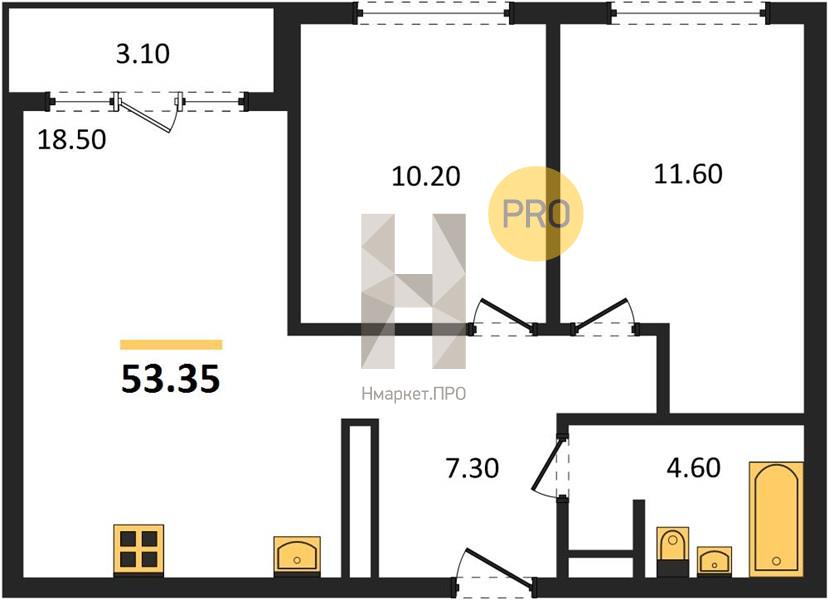 | Общая площадь: | 53.35 м2 |