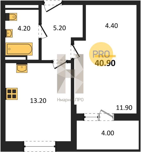 | Общая площадь: | 40.90 м2 |