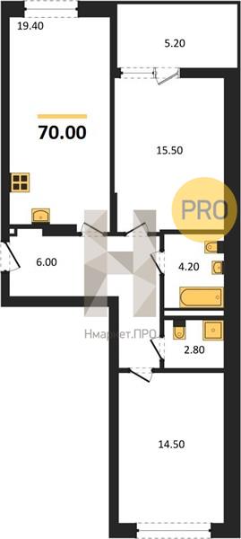 | Общая площадь: | 70.00 м2 |