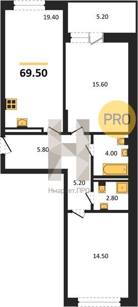 Квартира: 2 к 69,50 кв.м., 13 этаж в комплексе А+, 1 очередь, корп.1.5, сдача: 4кв. , этажей: 15, адрес Екатеринбург г., Академика Ландау ул., , Застройщик: Девелопмент-Юг.