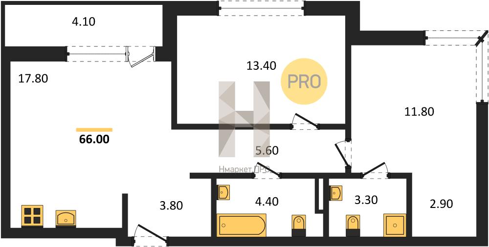 | Площадь кухни: | 17.80 м2 |