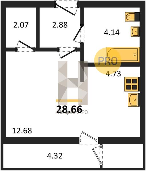Студия: 28,66 кв.м., 16 этаж в комплексе Притяжение, 5 очередь, корп.14.6 (10 этап), сдача: 2кв. , этажей: 18, адрес Екатеринбург г., Академика Ландау ул., д. 14.6, Застройщик: Притяжение.