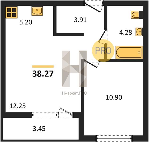 Квартира: 1 к 38,27 кв.м., 16 этаж в комплексе Притяжение, 5 очередь, корп.14.6 (10 этап), сдача: 2кв. , этажей: 18, адрес Екатеринбург г., Академика Ландау ул., д. 14.6, Застройщик: Притяжение.