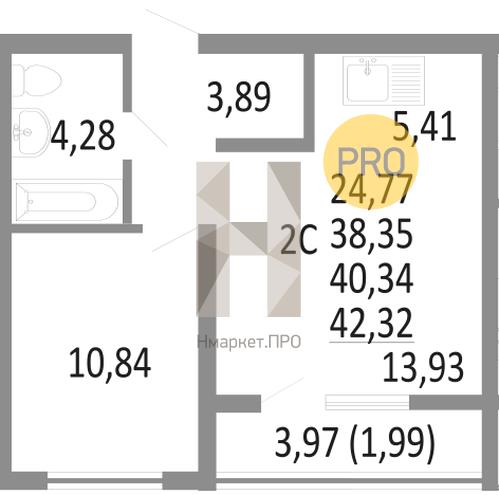 Квартира: 1 к 40,34 кв.м., 18 этаж в комплексе Притяжение, 5 очередь, корп.14.6 (10 этап), сдача: 2кв. , этажей: 18, адрес Екатеринбург г., Академика Ландау ул., д. 14.6, Застройщик: Притяжение.