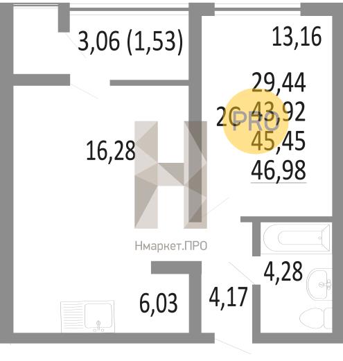 Квартира: 1 к 45,45 кв.м., 4 этаж в комплексе Притяжение, 5 очередь, корп.14.6 (10 этап), сдача: 2кв. , этажей: 18, адрес Екатеринбург г., Академика Ландау ул., д. 14.6, Застройщик: Притяжение.