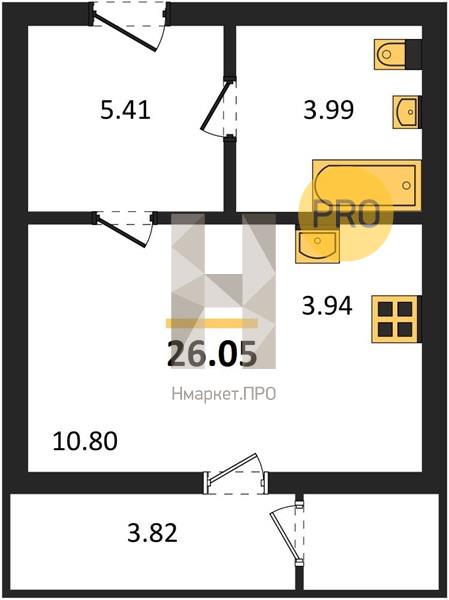 | Общая площадь: | 26.05 м2 |