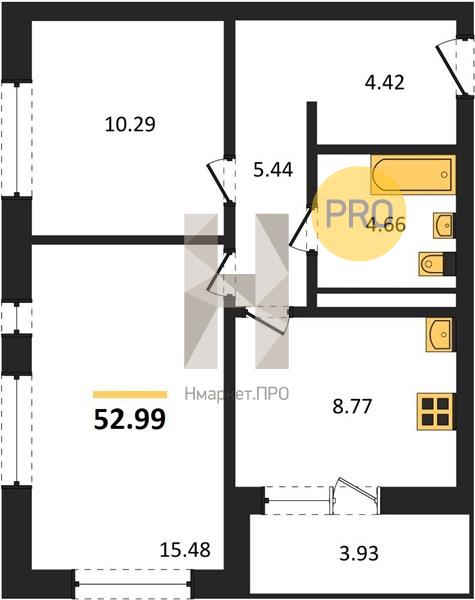 Квартира: 2 к 52,99 кв.м., 22 этаж в комплексе 12 квартал, 1 очередь, корп.12.9, сдача: 3кв. , этажей: 23, адрес Екатеринбург г., Академика Ландау ул., д. 34, Застройщик: СЗ 12 квартал.