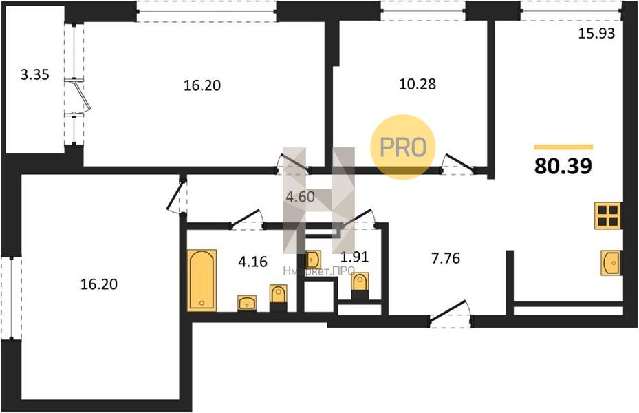 | Общая площадь: | 80.39 м2 |