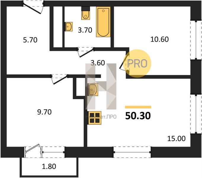| Общая площадь: | 50.30 м2 |