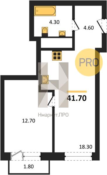 | Общая площадь: | 41.70 м2 |